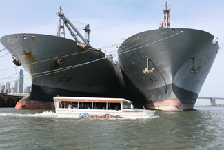 バスの様に陸上を走り、ボートの様に水に浮かぶ水陸両用の乗り物に乗ってアイランドツアーへ出かけよう。