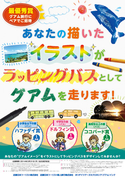 ザイン案の中から選定を行います。なお、各部門の表彰者には副賞としてグアム旅行にご招待し、自分自身がデザインしたバスにご乗車いただきます。